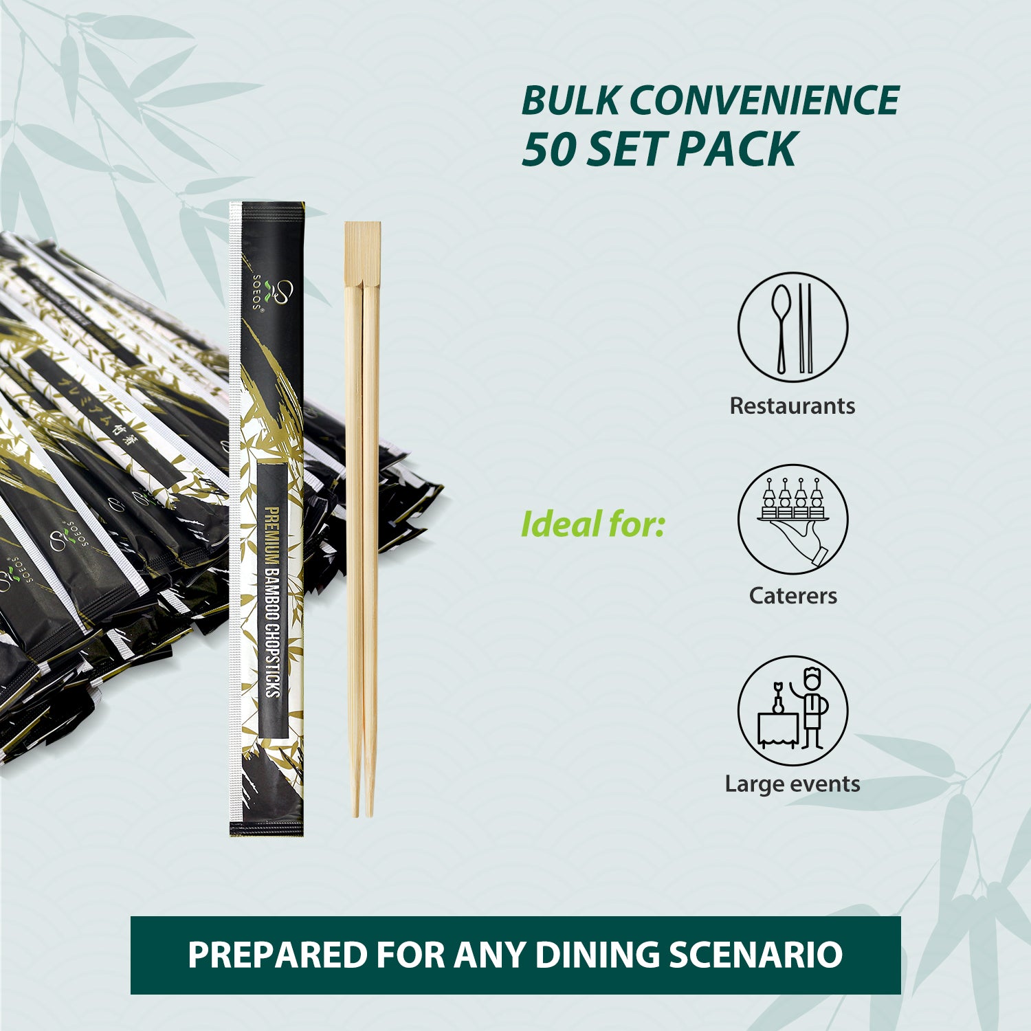 • Soeos Each set includes about 50 pairs of smooth, splinter-free disposable chopsticks, perfect for restaurants, home kitchens, catering, or large gatherings. Enjoy hassle-free meals without the need for washing or maintenance